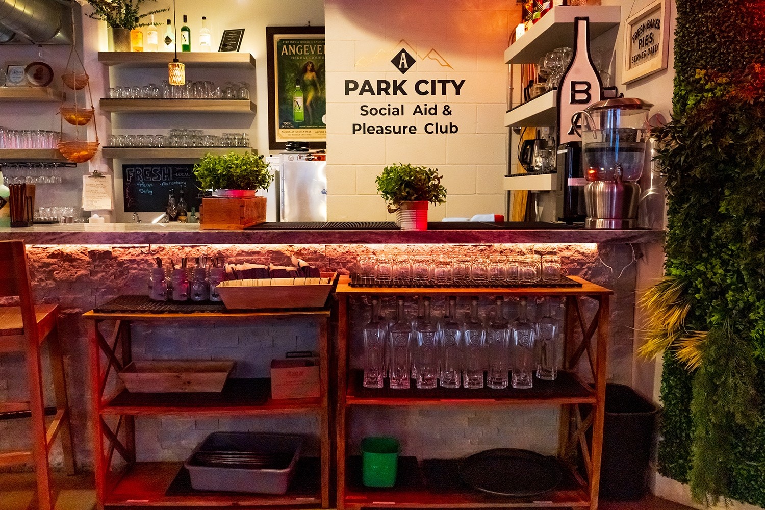 The bar at Alpine Distilling Social Aid & Pleasure Club. Courtesy of Alpine Distilling.