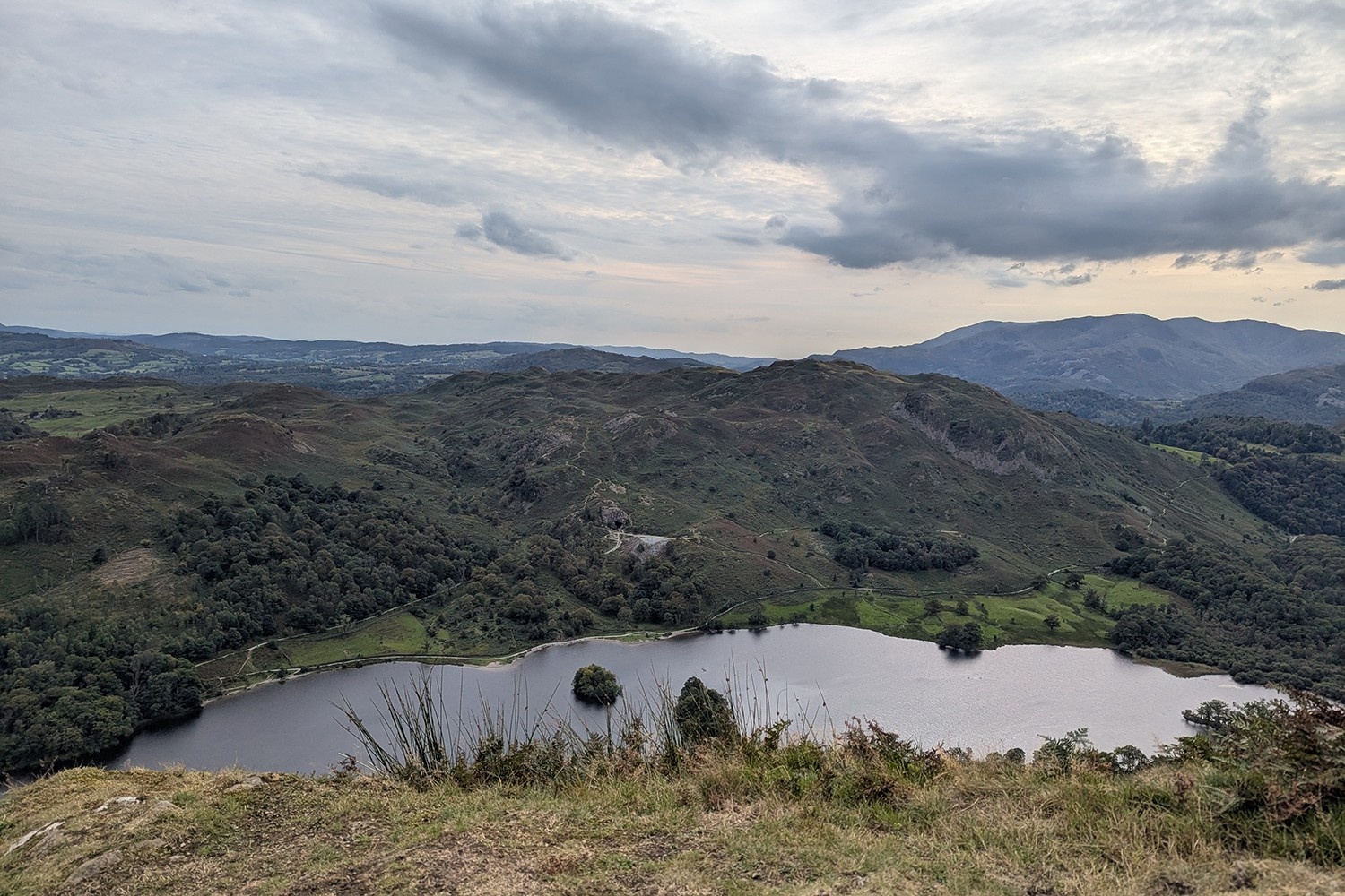 This route sweeps across the stunning greenery of the Lake District, spanning 8 Wainwrights (the 214 legendary hills of the Lakes, similar to bagging Munros in Scotland). We climbed steadily, hiking poles firmly in hand, looking back across the glimmering surface of Lake Windermere and the town of Ambleside below. Scrambling over rocks, triumphantly tapping trig points, and spotting the iconic Rydal Cave on our descent into Ambleside, it’s easy to see why this landscape has been so important for adventurers and writers alike over the centuries.