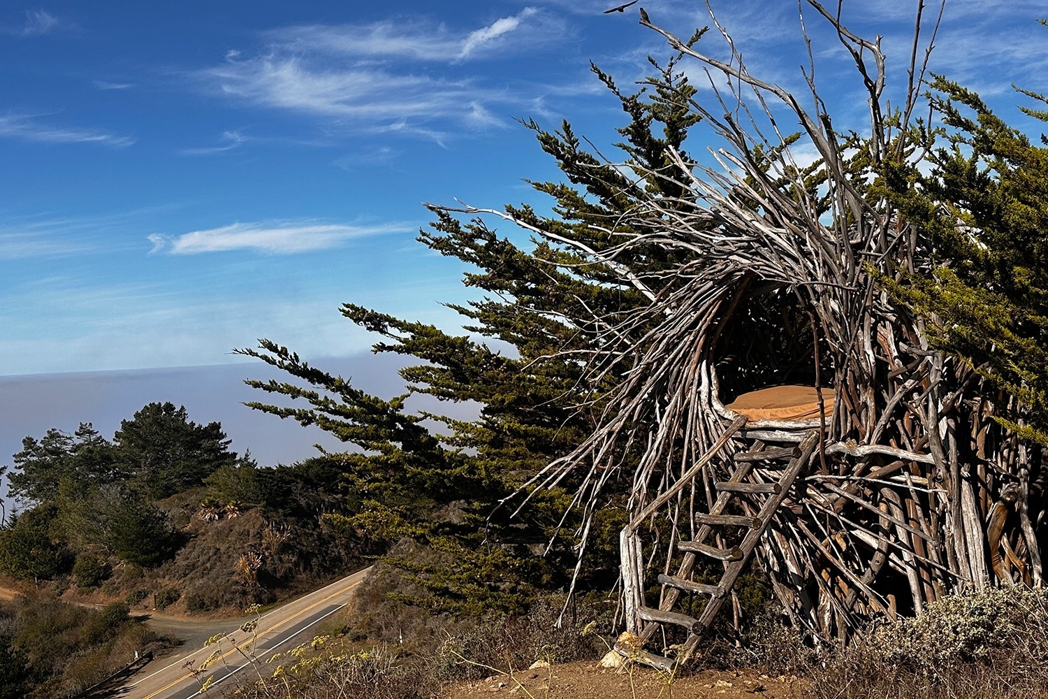If you’ve got your own tent and gear, there are a few campsites with picnic tables. But the most unique campsites are the Human Nest and the Twig Hut. Built by Big Sur artist Jayson Fann, these sculptural wooden art pieces function as tent platforms; all you need to is your bedding and a sense of adventure.